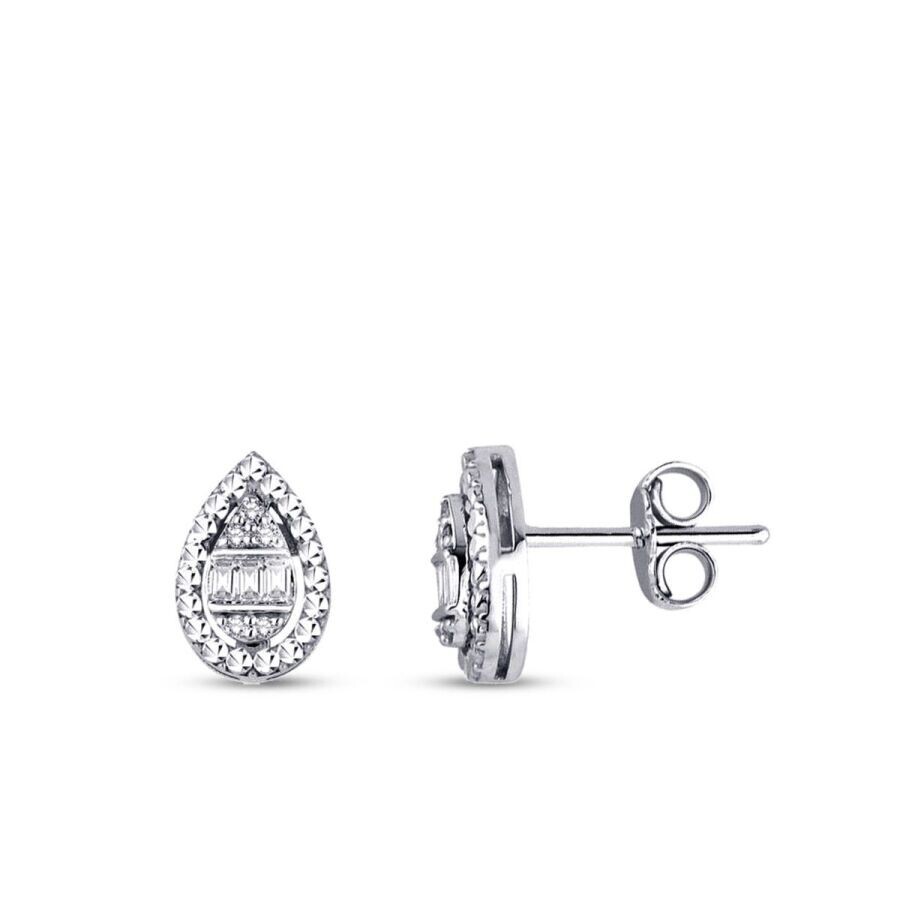 0.10 Karat Pırlanta Baget Damla Küpe