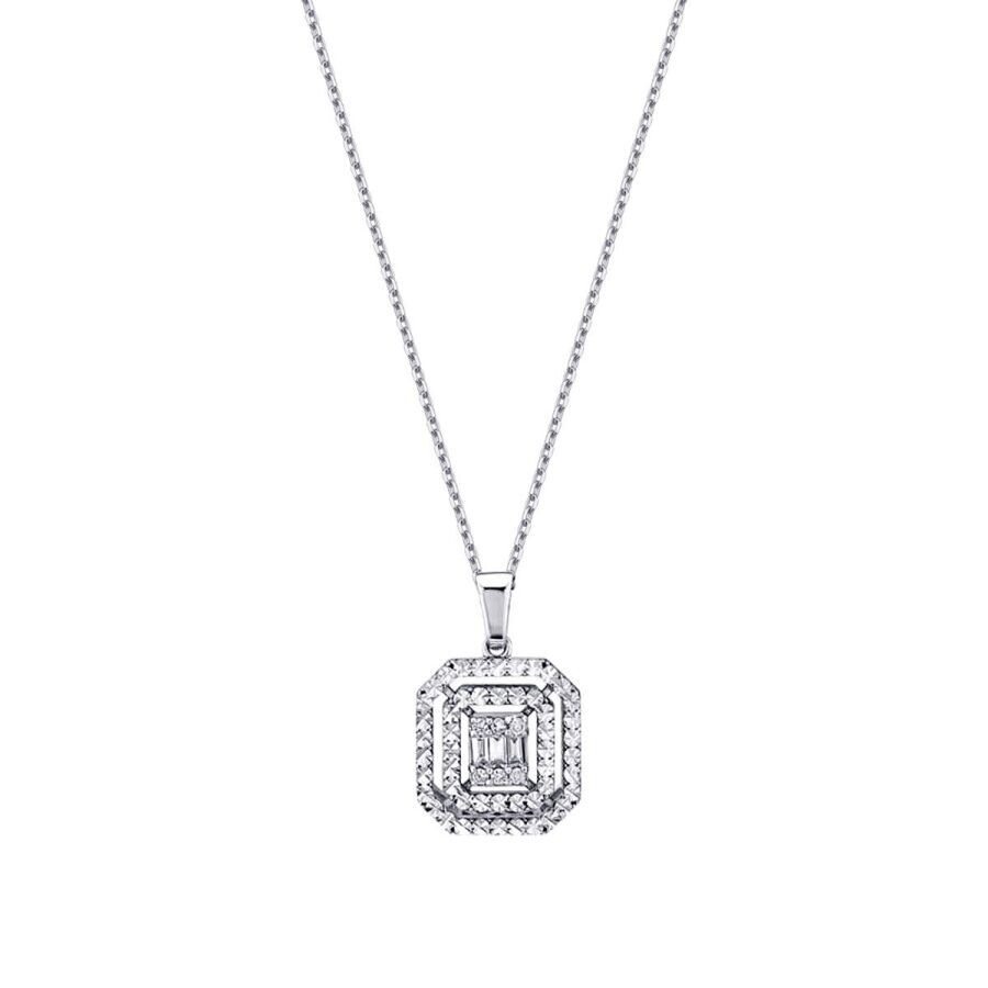 0.07 Karat Pırlanta Efektli Baget Kolye