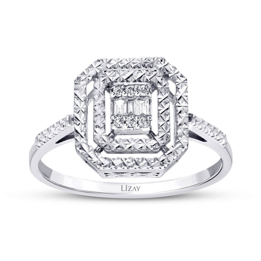 0.07 Karat Pırlanta Efektli Baget Yüzük