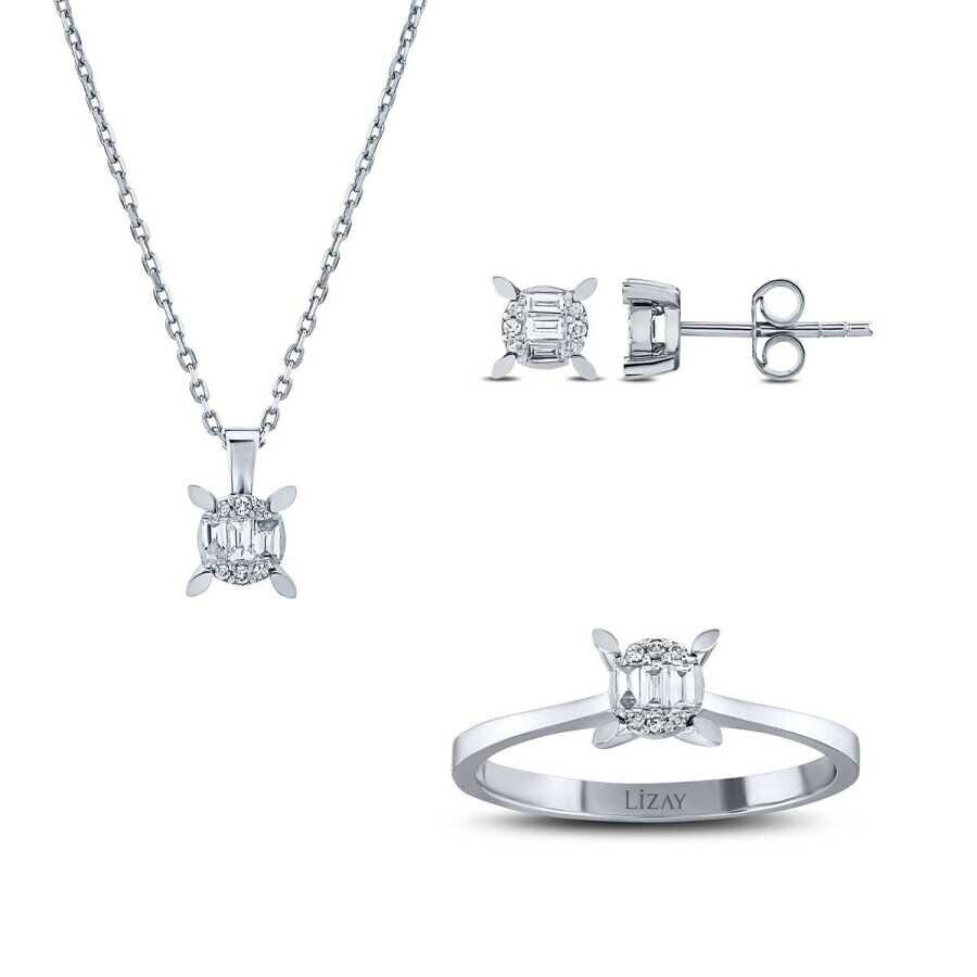 0.34 Karat Pırlanta Baget Tektaş Mini Set