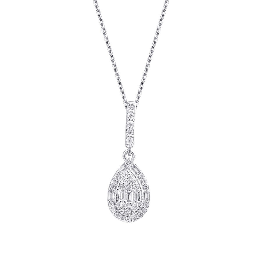 0.39 Karat Pırlanta Baget Taşlı Damla Kolye