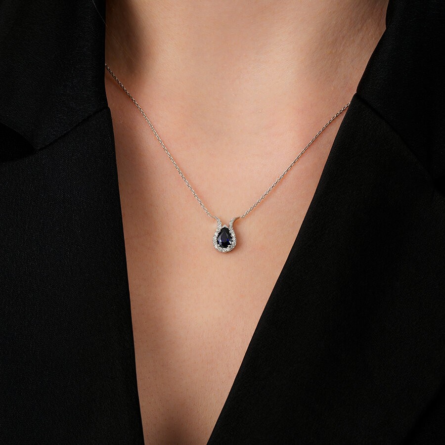 0.97 Karat Pırlanta Safir Damla Kolye