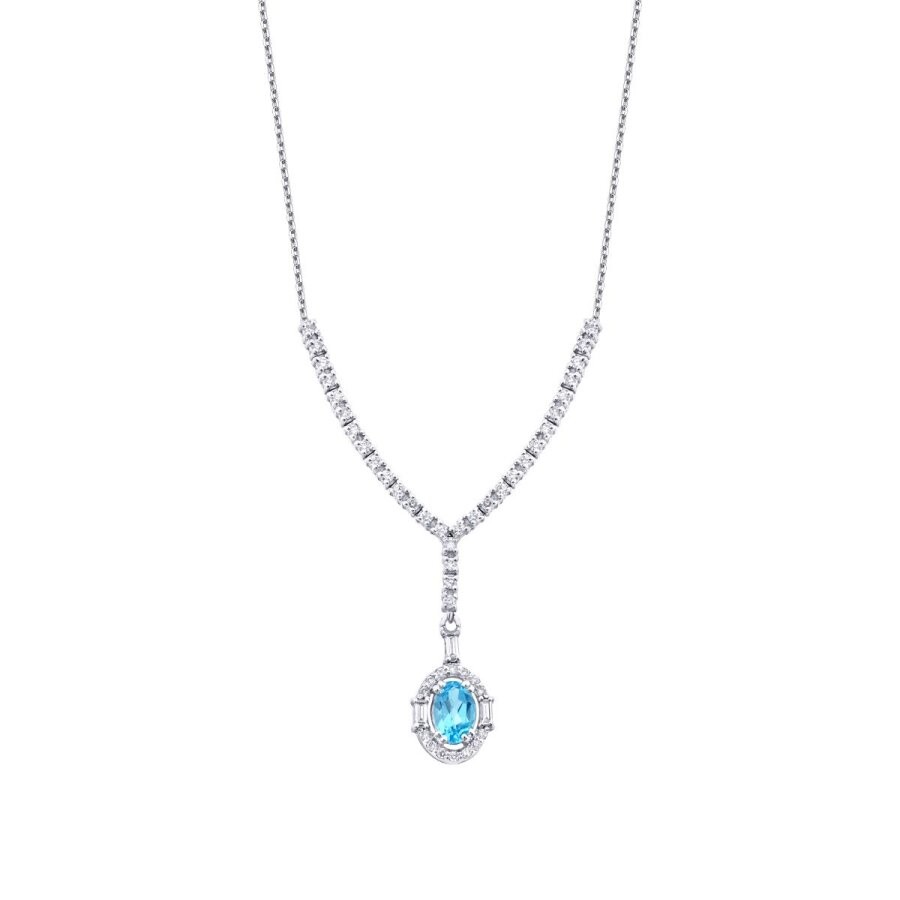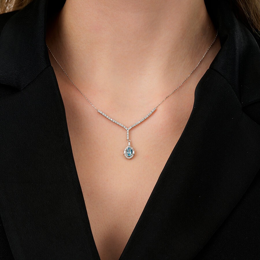 0.98 Karat Pırlanta Blue Topaz Baget Kolye