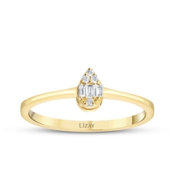 0.08 Karat Pırlanta Baget Damla Yüzük