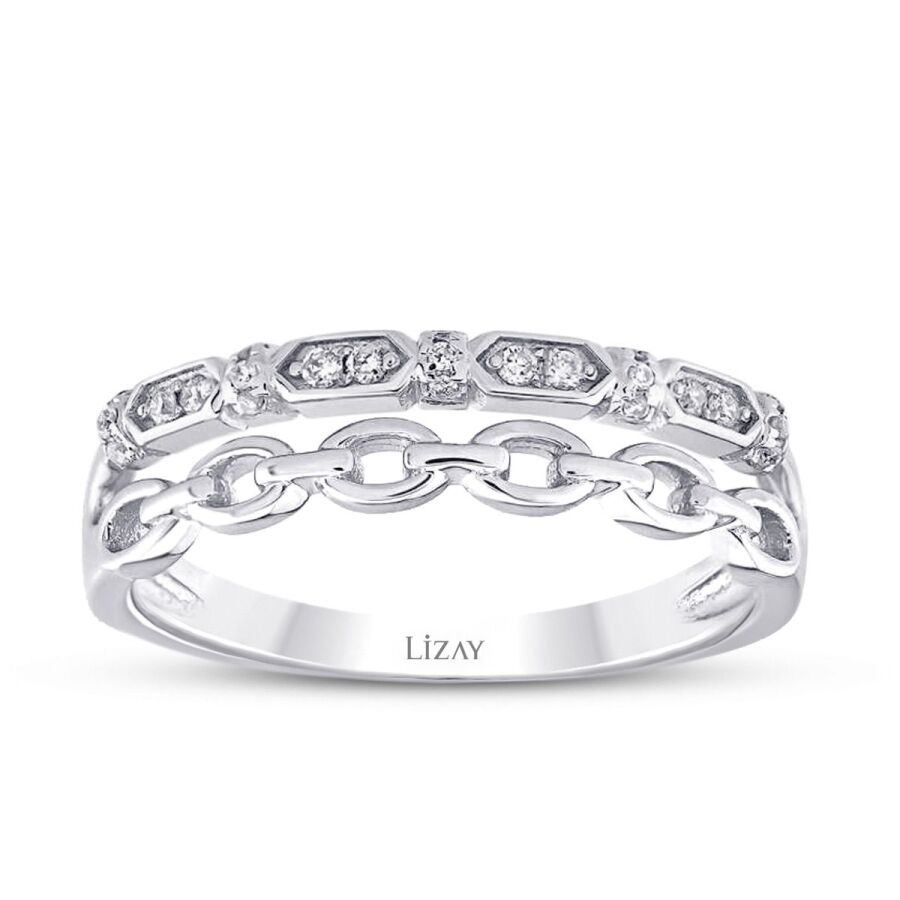 0.11 Karat Pırlanta İki Sıra Yarımtur Yüzük T3497
