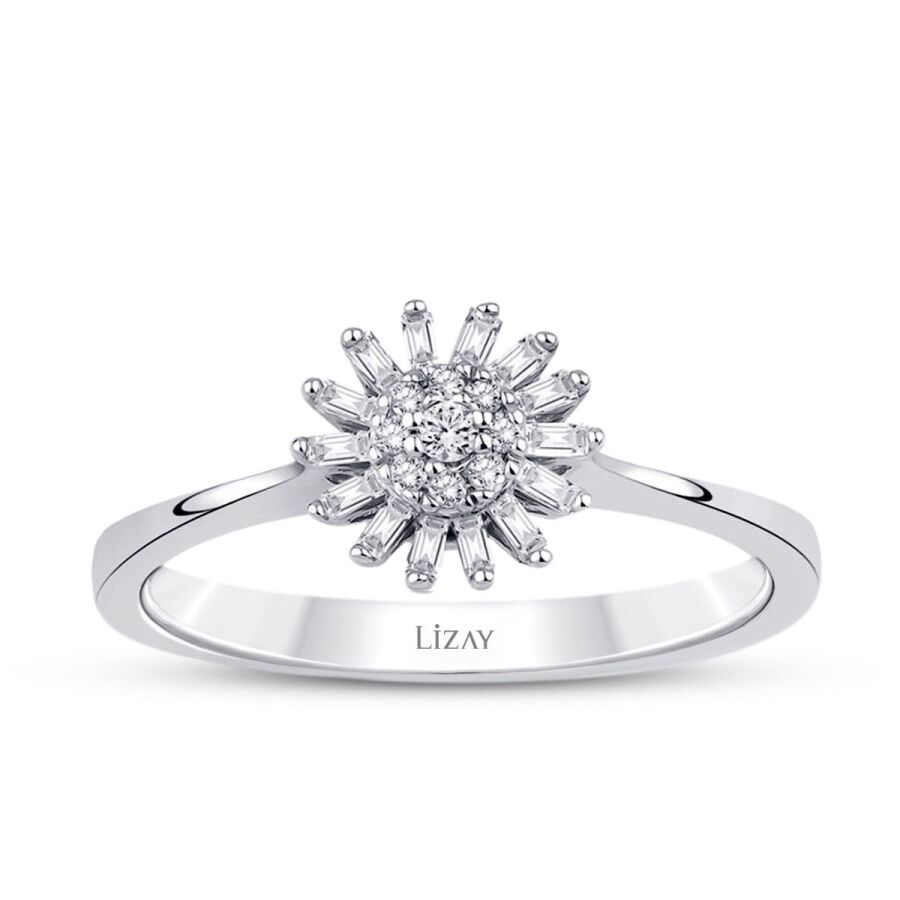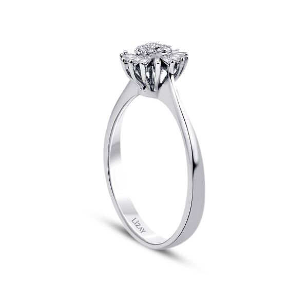 0.12 Karat Pırlanta Baget Çiçek Yüzük