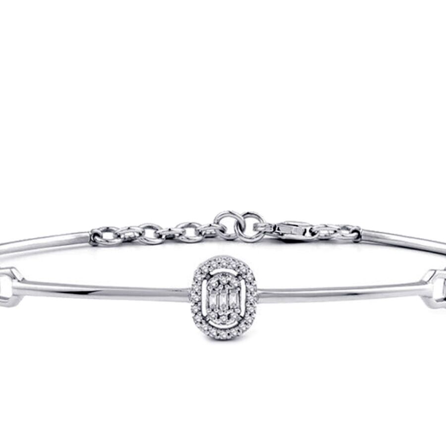 Geometrik çizgileriyle dikkat çeken bu bileklik, incelikli taş geçişleriyle zarif bir ifade sunar. Sade ve kompakt yapısıyla hem günlük kullanımda hem de özel anlarda estetik bir şıklık sağlar. Modern tasarımı klasik detaylarla dengeler.