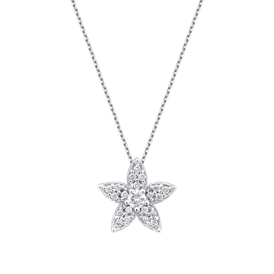 Çiçek formunun zarif detaylarıyla tasarlanan bu kolye, doğanın tazeliğini boynunuzda taşır. Feminen çizgisiyle romantik bir hava katar, ışıldayan ışıltısıyla günlük hayattan özel davetlere kadar şıklığınızı tamamlar.