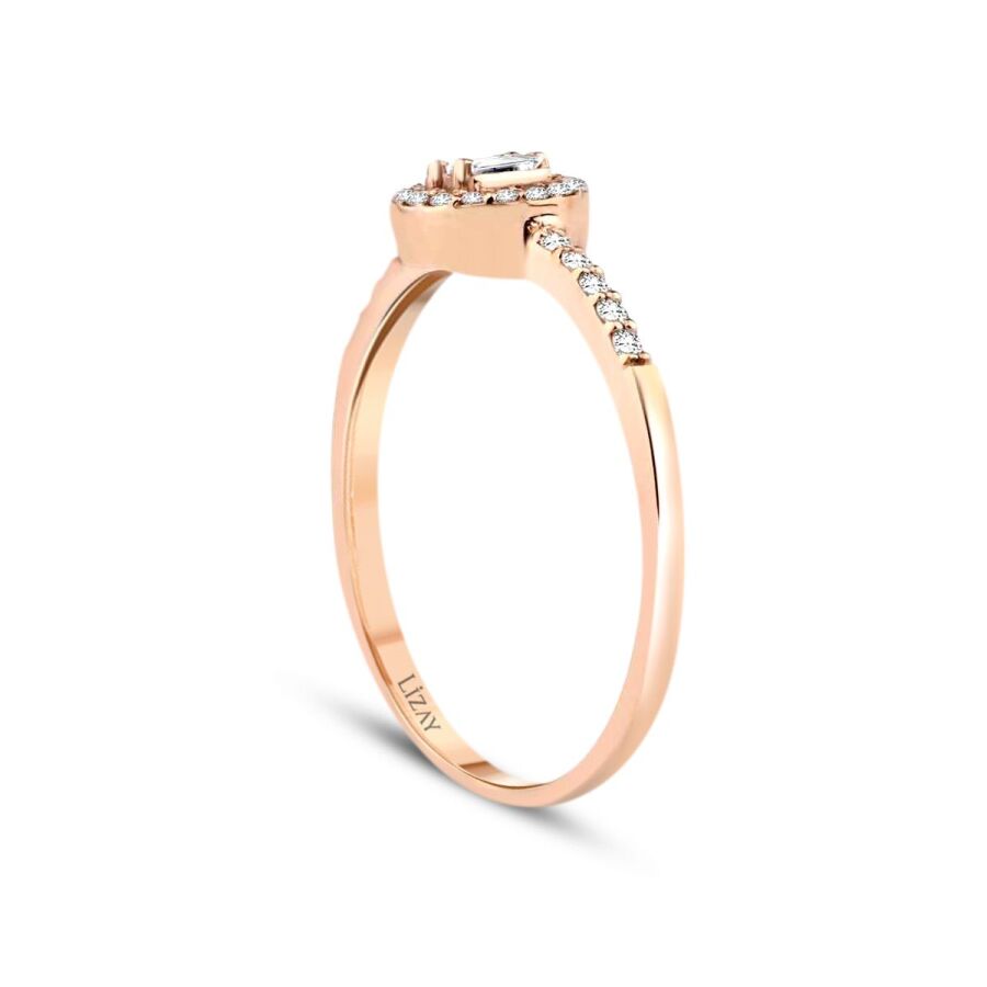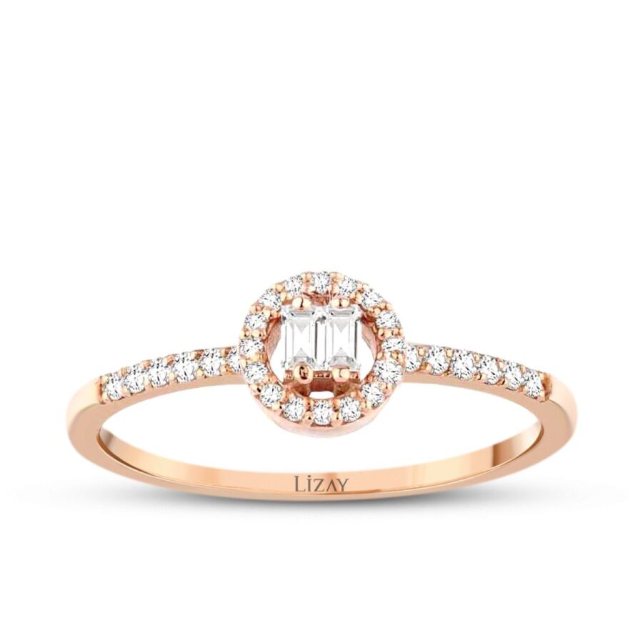 0.18 Karat Pırlanta Baget Kolu Taşlı Yüzük T3425