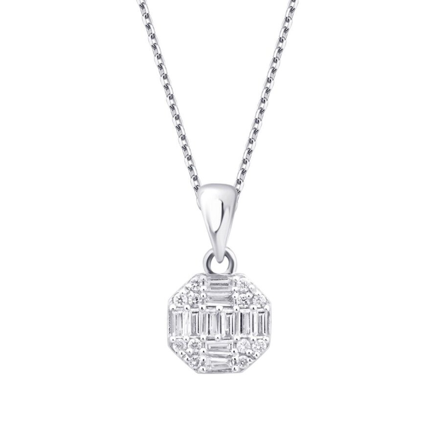 0.21 Karat Pırlanta Baget Yuvarlak Kolye