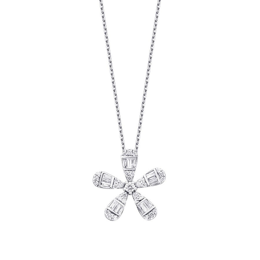 0.23 Karat Pırlanta Baget Çiçek Kolye