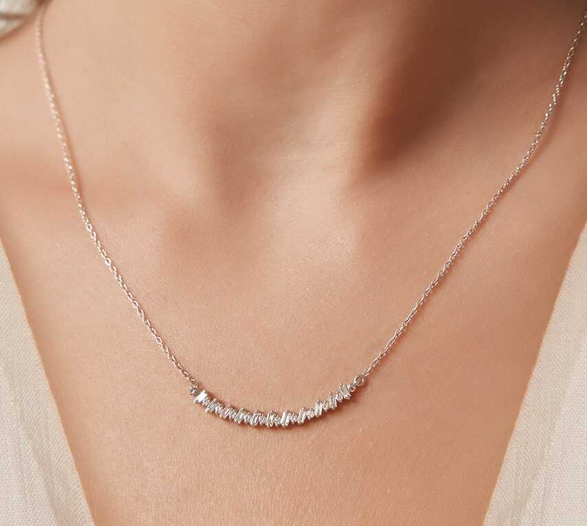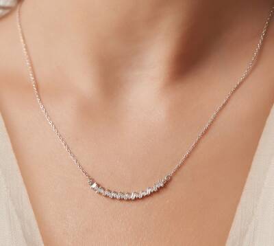 Minimalizm şıklığına sahip olan bu pırlanta baget kolye, her tarza uyum sağlayan zarif bir aksesuardır. Şıklığı ve zarafeti bir arada sunan bu kolye, herhangi bir görünümü tamamlayarak tarzınızı ön plana çıkarır. Kendinizi özel hissetmek ve şıklığınızı vurgulamak için bu kolye tam size göre!