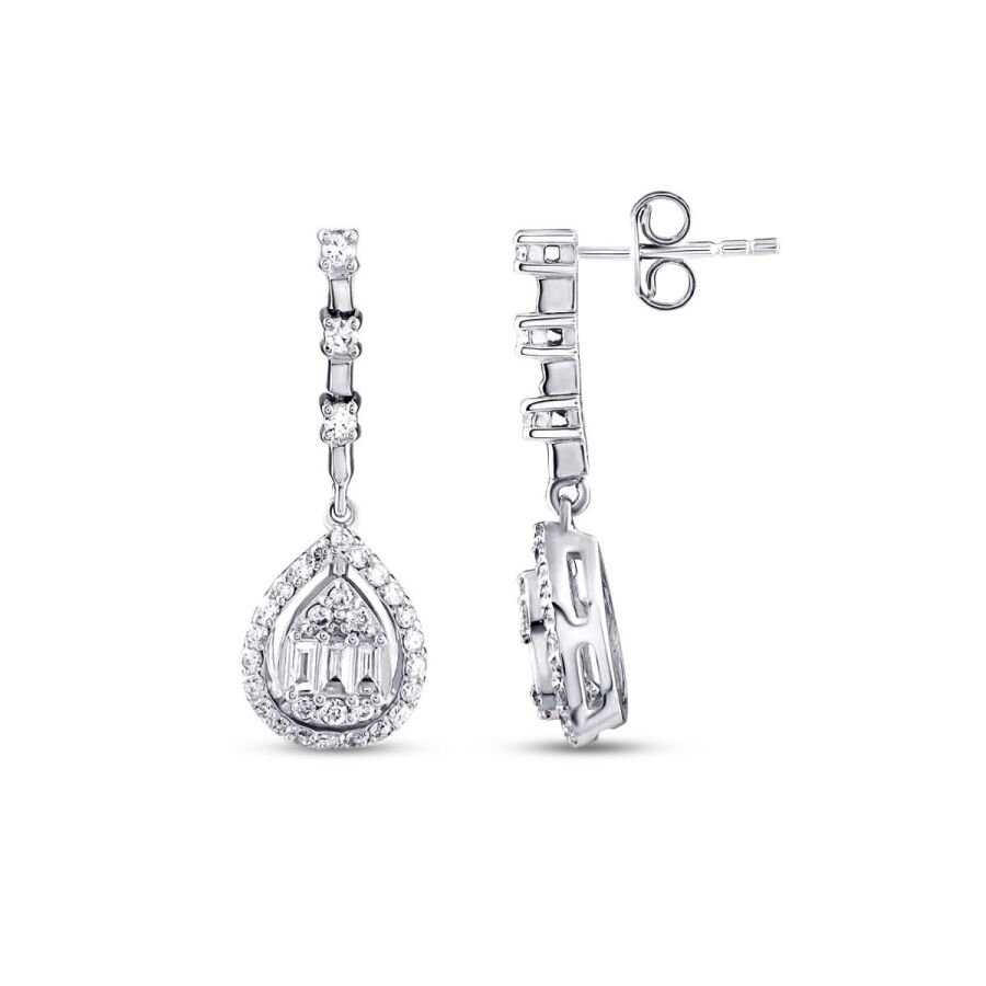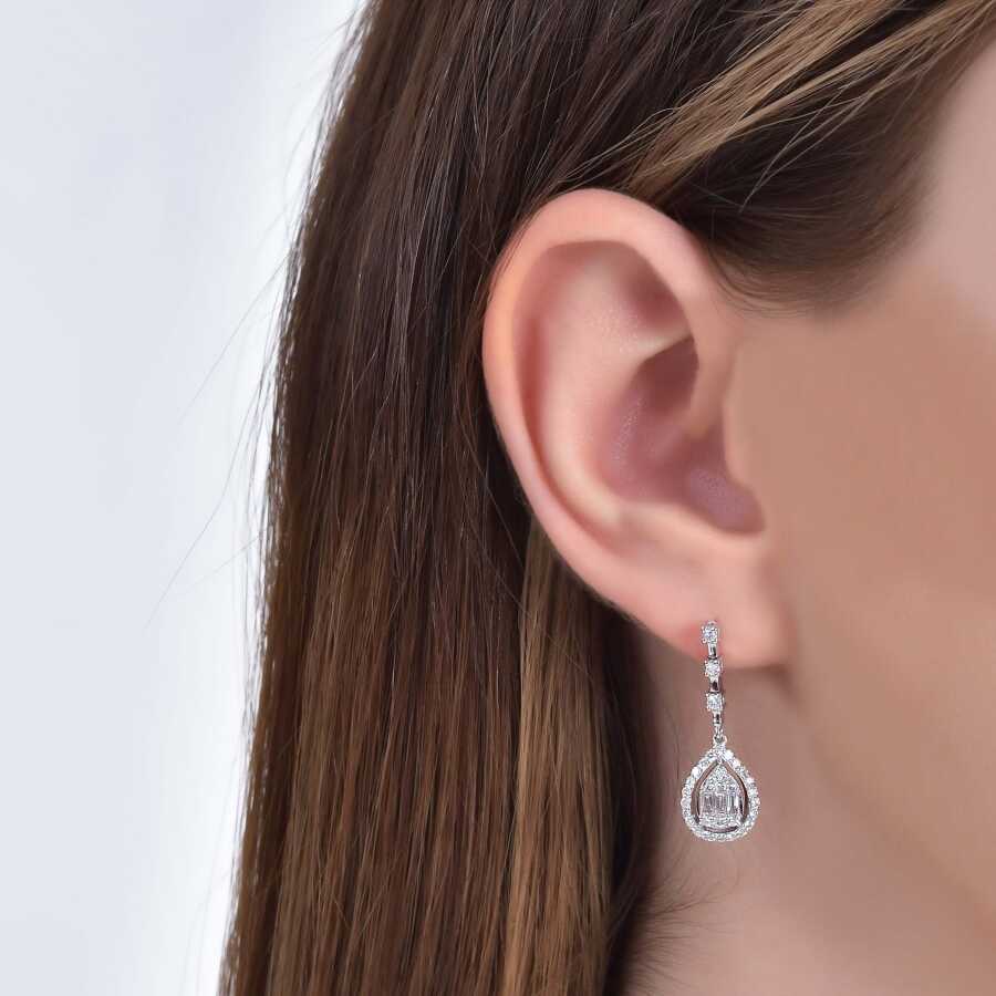 0.37 Karat Pırlanta Baget Damla Küpe T354