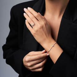 Sadelikten ilham alan bu bileklik, modern duruşuyla zarafeti gündelik stile taşır. İnce detayları, taşların göz alıcı ışıltısıyla birleşerek sofistike bir görünüm sunar.