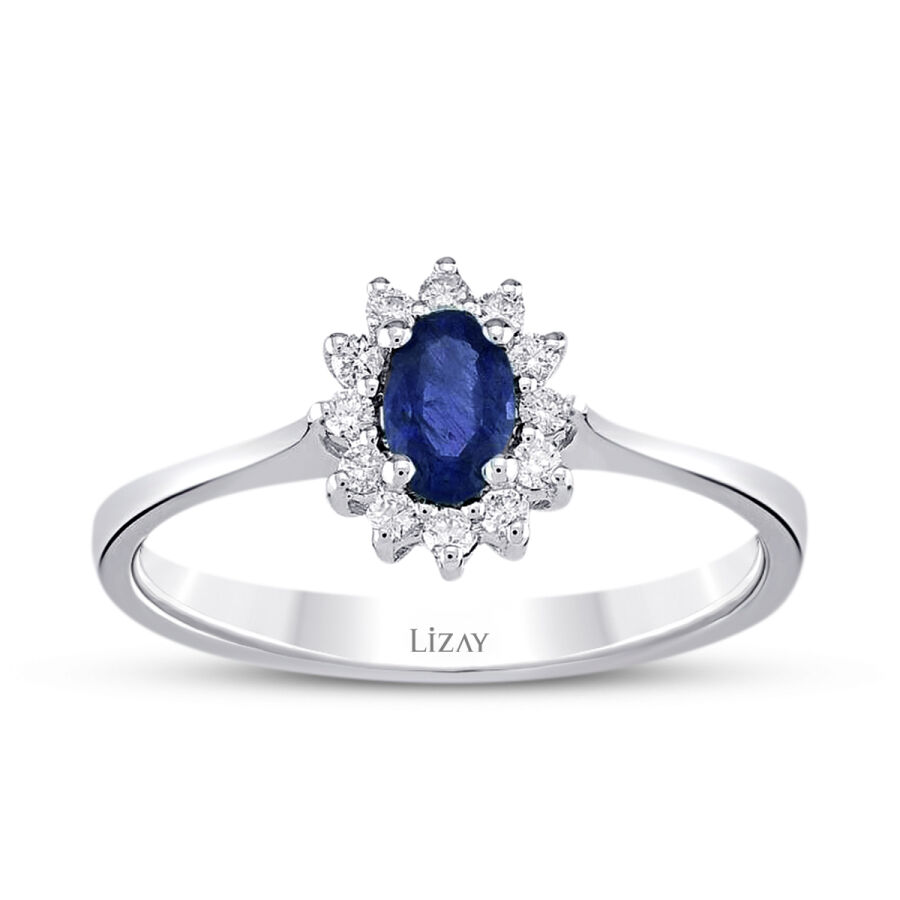 0.40 Karat Pırlanta Oval Safir Yüzük T3202