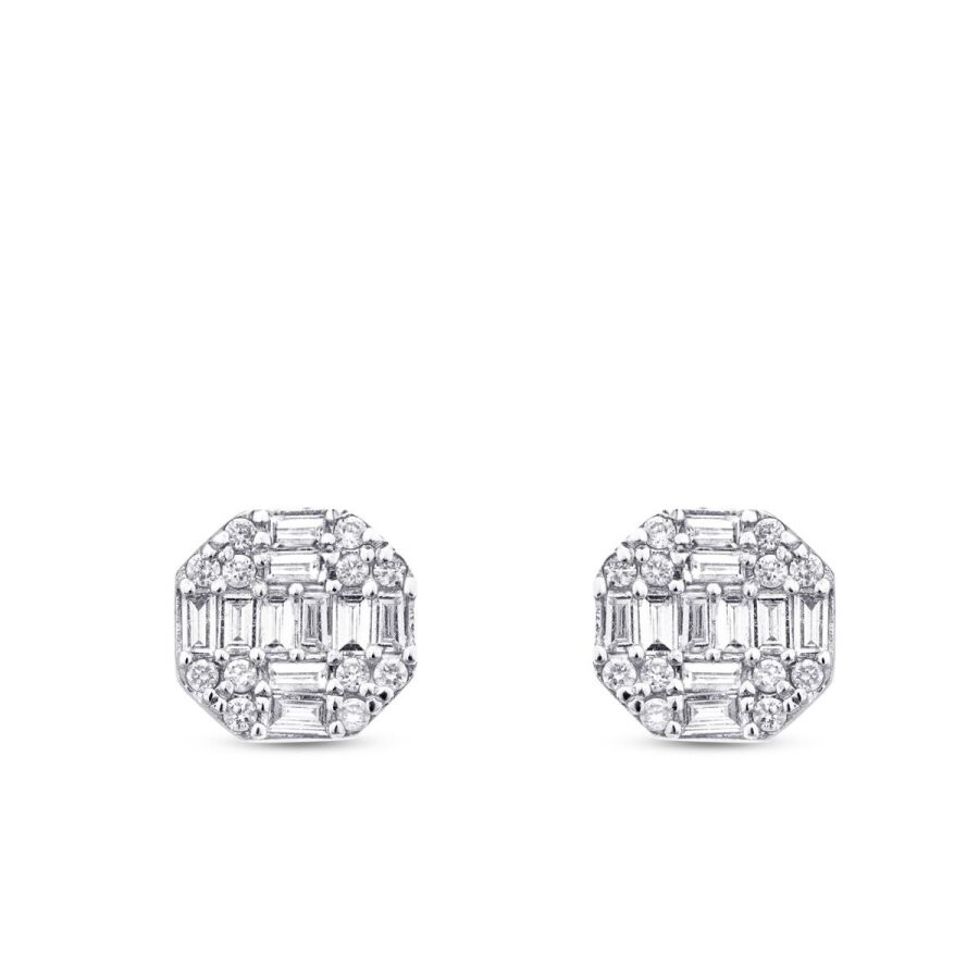 0.42 Karat Pırlanta Baget Yuvarlak Küpe