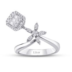 0.44 Karat Pırlanta Baget Çiçek Yüzük T3716