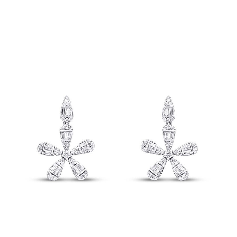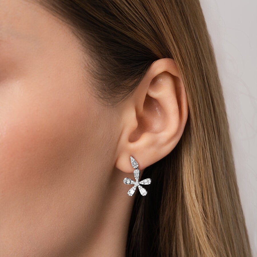 0.50 Karat Pırlanta Baget Çiçek Küpe