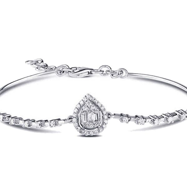 Bu zarif ve detaylı pırlanta damla baget kelepçe ile tarzınızı tamamlayın. Zarafetinizi ön plana çıkaran bu mücevher, her türlü görünümünüze sofistike bir dokunuş katacak.