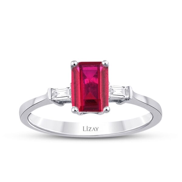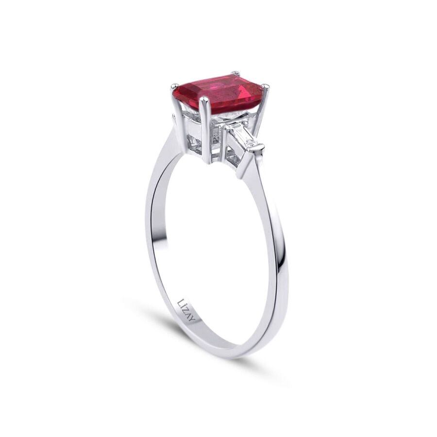 1.20 Karat Pırlanta Baget Yakut Yüzük T3616