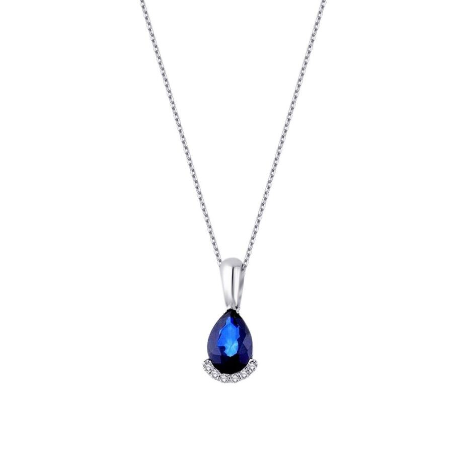 0.69 Karat Pırlanta Safir Damla Kolye