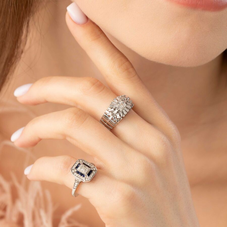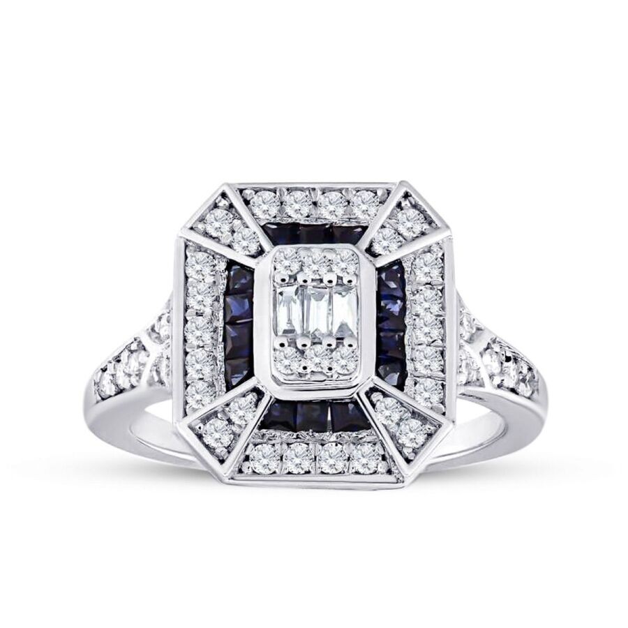 0.71 Karat Pırlanta Baget Safir Yüzük
