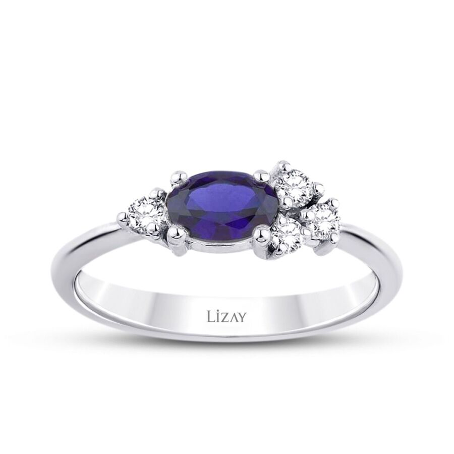 Beyaz Altın, 14 Ayar, 1.76 grTaş : PırlantaAğırlık : 0.13 KaratRenk : F-GBerraklık : VS/SIKesim : YuvarlakTaş : Lab. SafirAğırlık : 0.60 KaratKesim : Oval