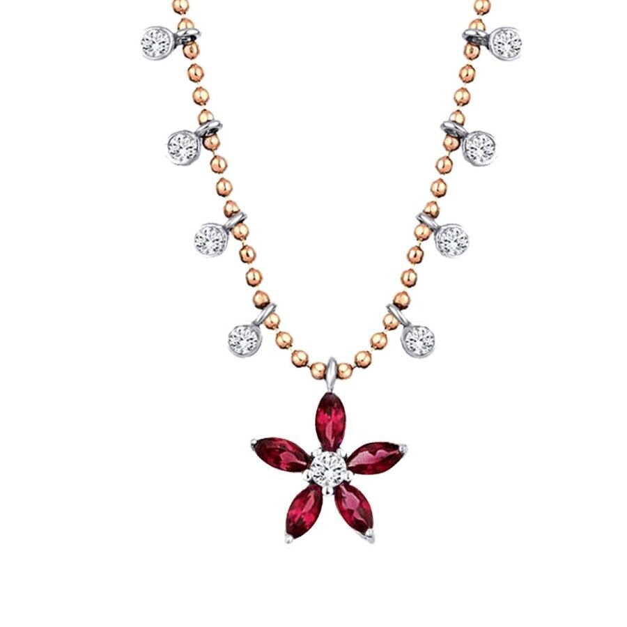 0.73 Karat Pırlanta Yakut Çiçek Kolye