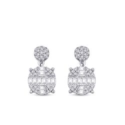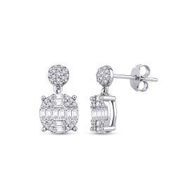 Modern formlu bu küpe, taşların dikkat çekici yerleşimiyle farklı bir ışıltı sunar. Sade ama çarpıcı bir görünüm için.