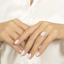 Bu ince modern çizgilere sahip pırlanta baget yüzük, zarif ve şık bir seçenektir.