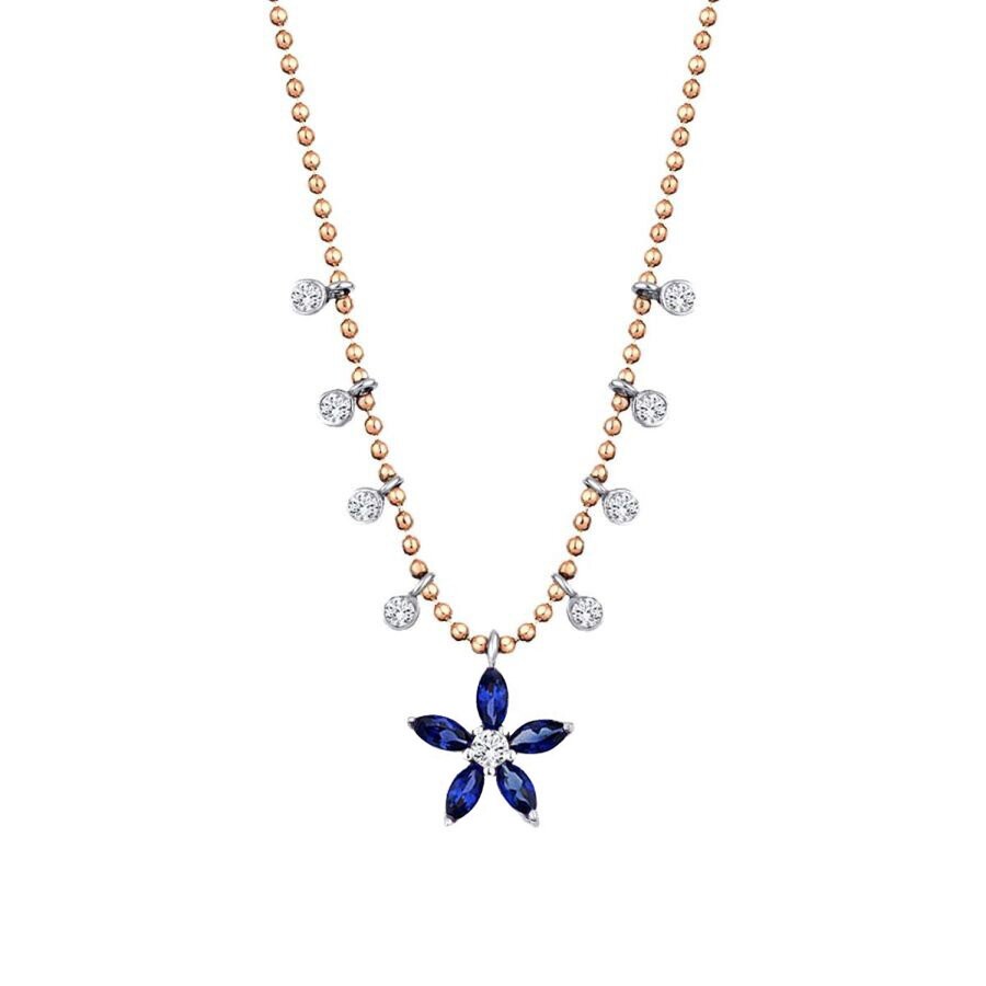 0.80 Karat Pırlanta Safir Çiçek Kolye