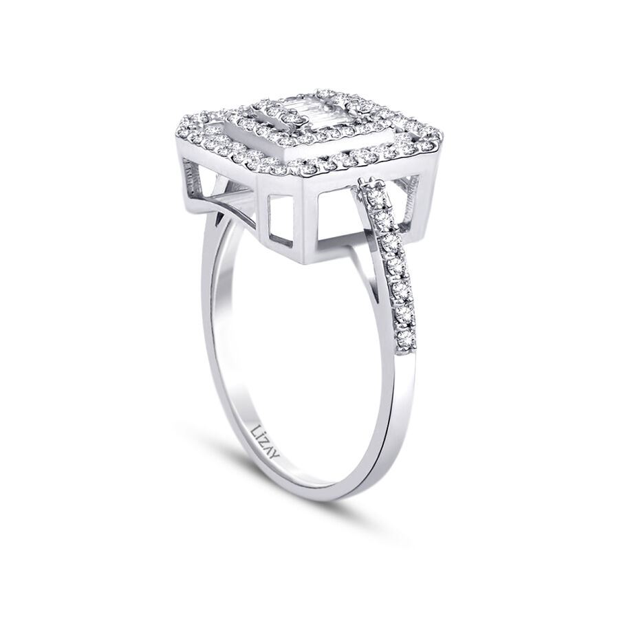Beyaz Altın, 14 Ayar, 2.66 grTaş : PırlantaAğırlık : 0.08 KaratRenk : FBerraklık : VS/SIKesim : BagetTaş : PırlantaAğırlık : 0.75 KaratRenk : FBerraklık : VS/SIKesim : Yuvarlak