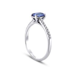 Beyaz Altın, 14 Ayar, 2.40 gr Taş : PırlantaAğırlık : 0.14 KaratRenk : F-GBerraklık : SIKesim : YuvarlakTaş : Lab. SafirAğırlık : 0.70 KaratKesim : Baget