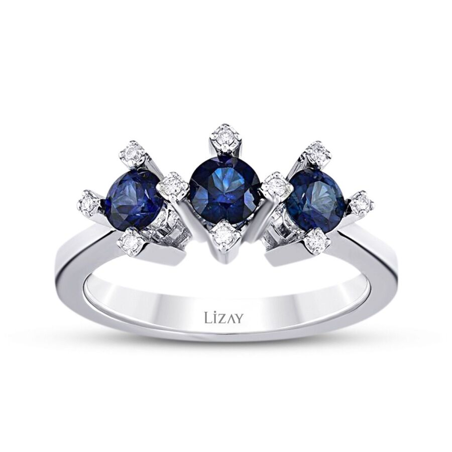 0.85 Karat Pırlanta Safir Tria Yüzük T3199