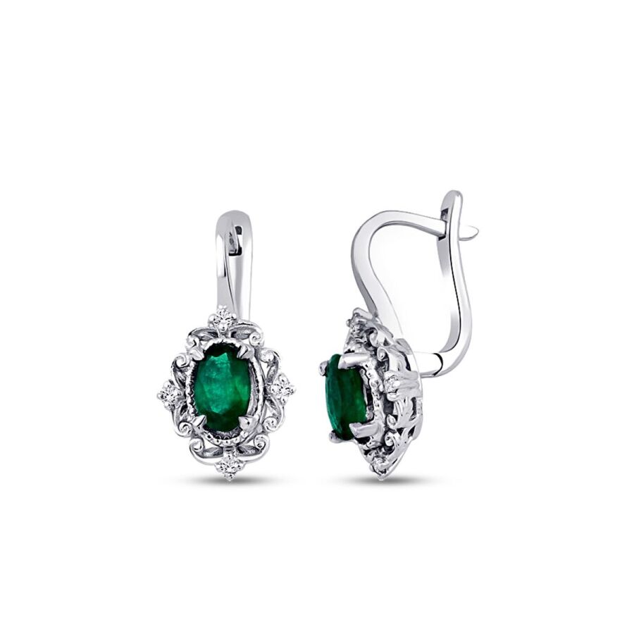 0.85 Karat Pırlanta Zümrüt Küpe