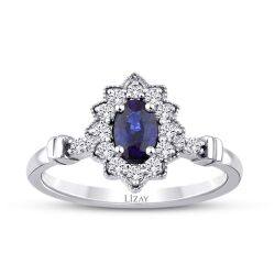 0.89 Karat Pırlanta Safir Yüzük T4894