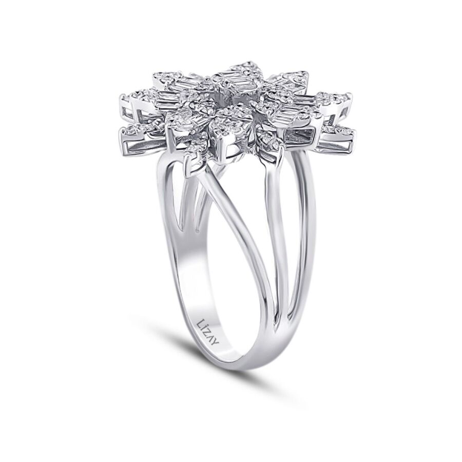 0.90 Karat Pırlanta Baget Çiçek Yüzük T448