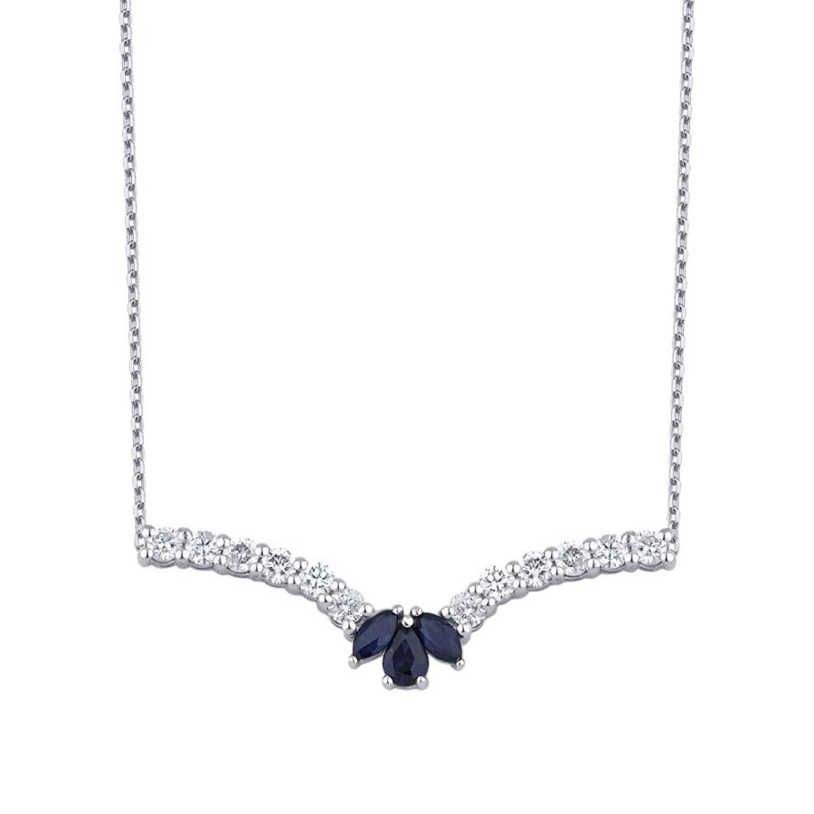 0.91 Karat Pırlanta Safir Lotus Kolye