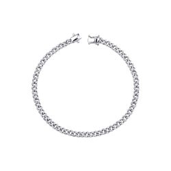 Zincirin klasik dokusuna ışıltılı bir dokunuş ekleyen bu tasarım, bilekte göz alıcı bir etki yaratır. Yoğun parlaklığı ve dengeli ağırlığı sayesinde hem rahat hem şık bir kullanım sunar. Geleneksel bileklik tarzına sofistike bir yaklaşım arayanlara hitap eder.