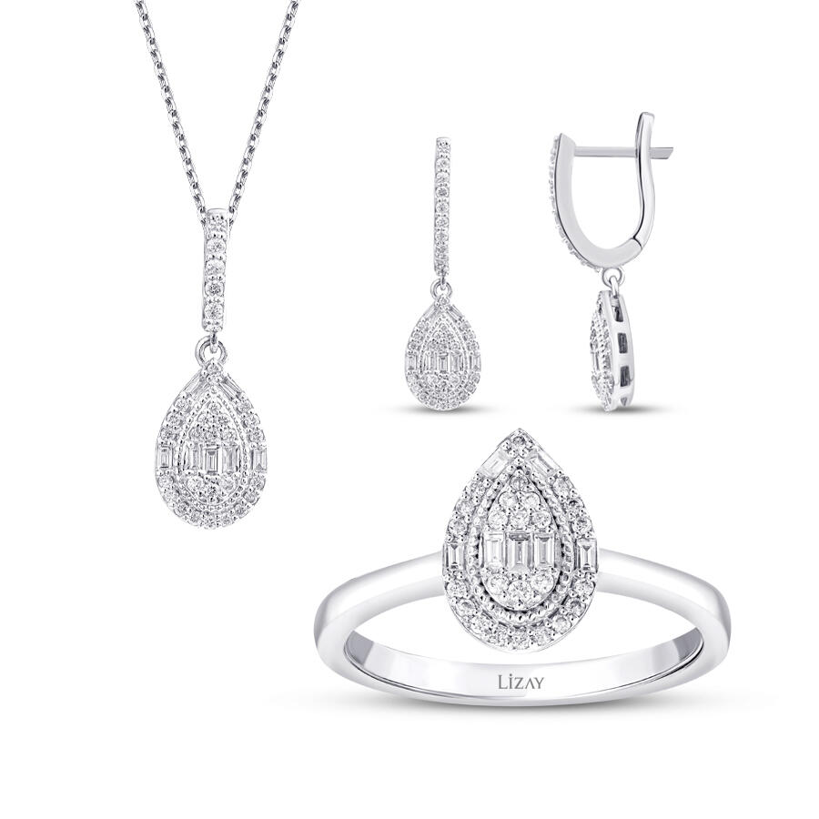 1.03 Karat Pırlanta Bagetli Damla Set