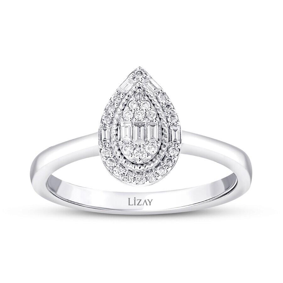 0.17 Karat Pırlanta Baget Taşlı Damla Trend Yüzük