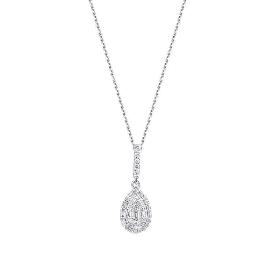 0.39 Karat Pırlanta Baget Taşlı Damla Kolye