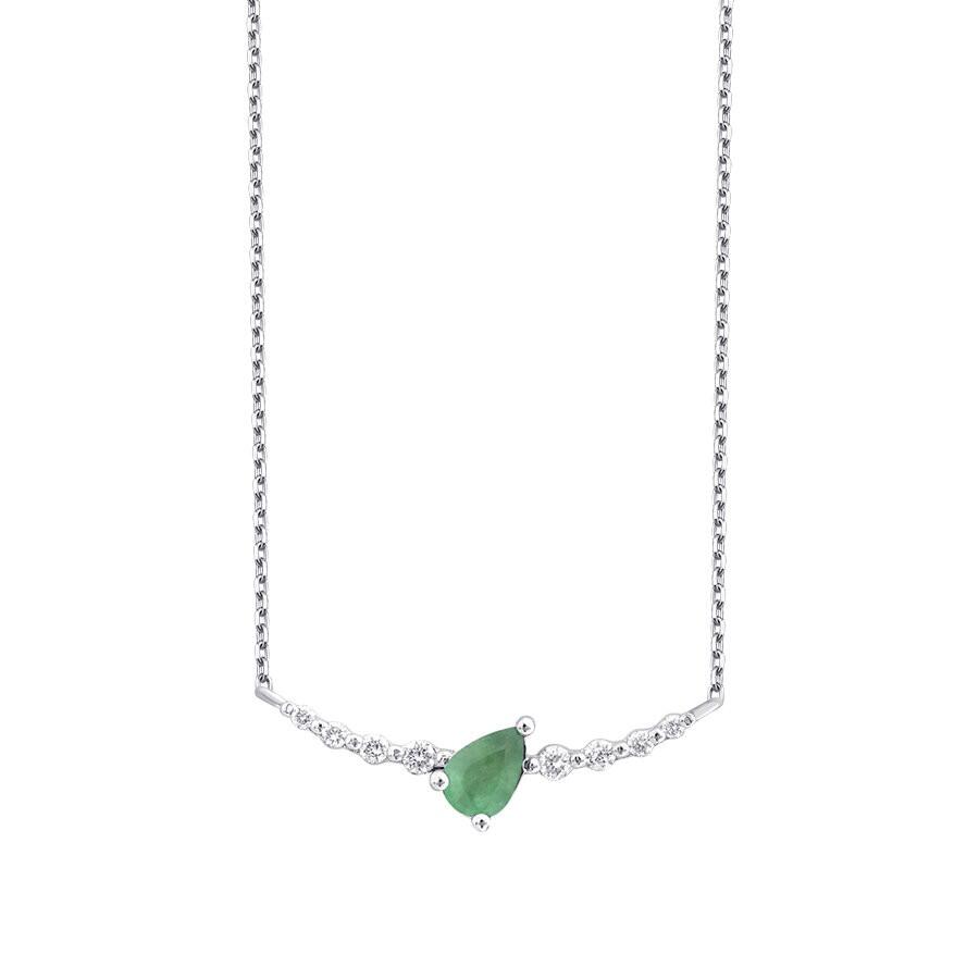 0.36 Karat Pırlanta Damla Taşlı Zümrüt Kolye