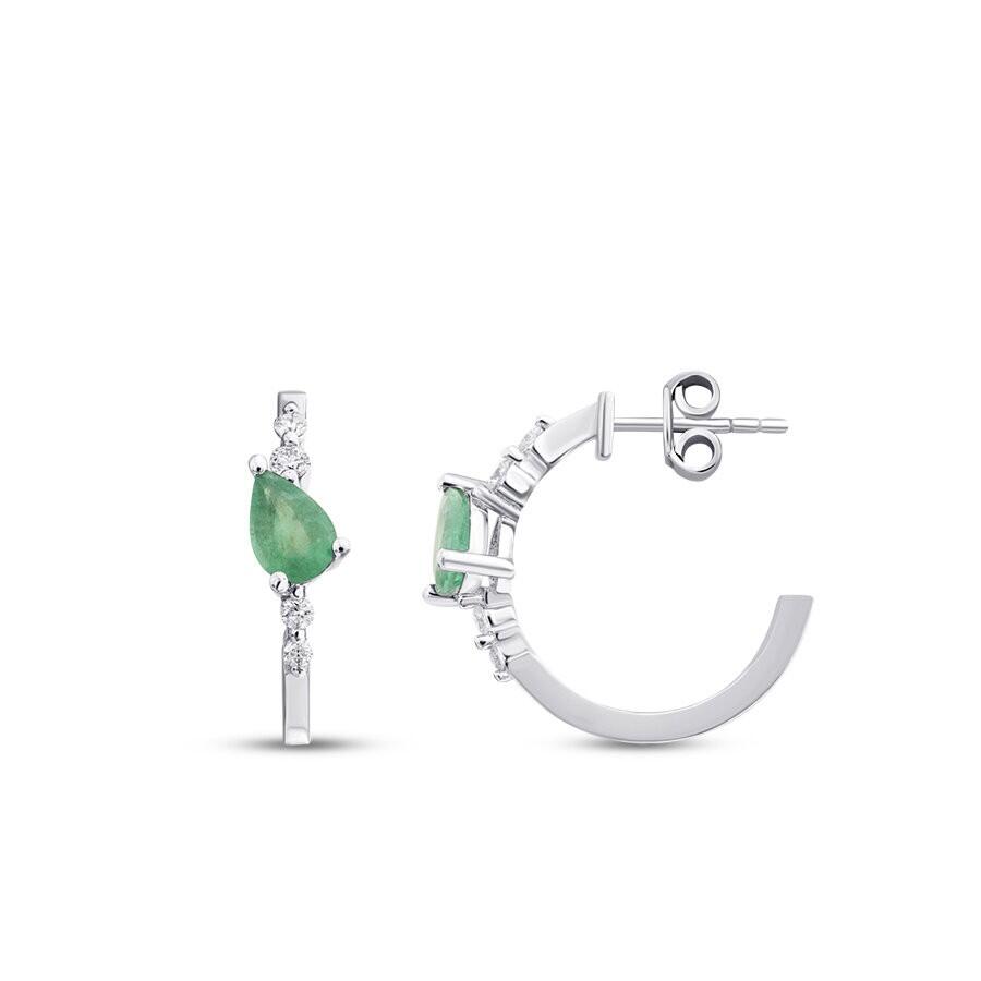 1.06 Karat Pırlanta Damla Taşlı Zümrüt Küpe