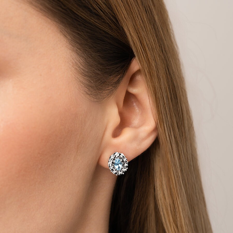 1.21 Karat Pırlanta Blue Topaz Küpe