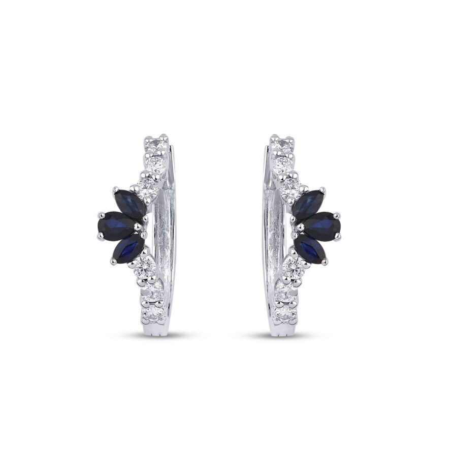 1.30 Karat Pırlanta Safir Lotus Küpe