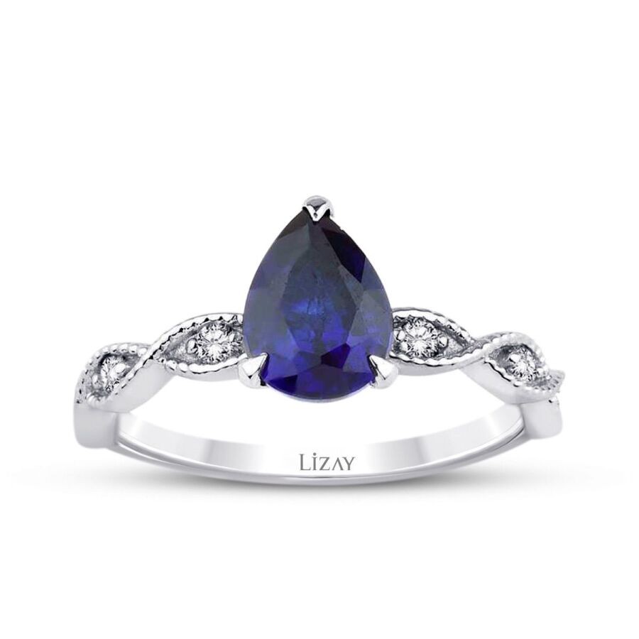 1.45 Karat Pırlanta Damla Safir Yüzük T3175