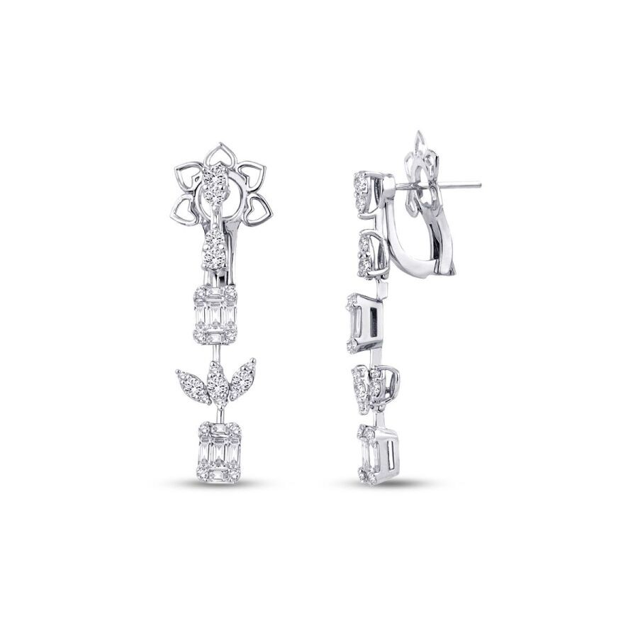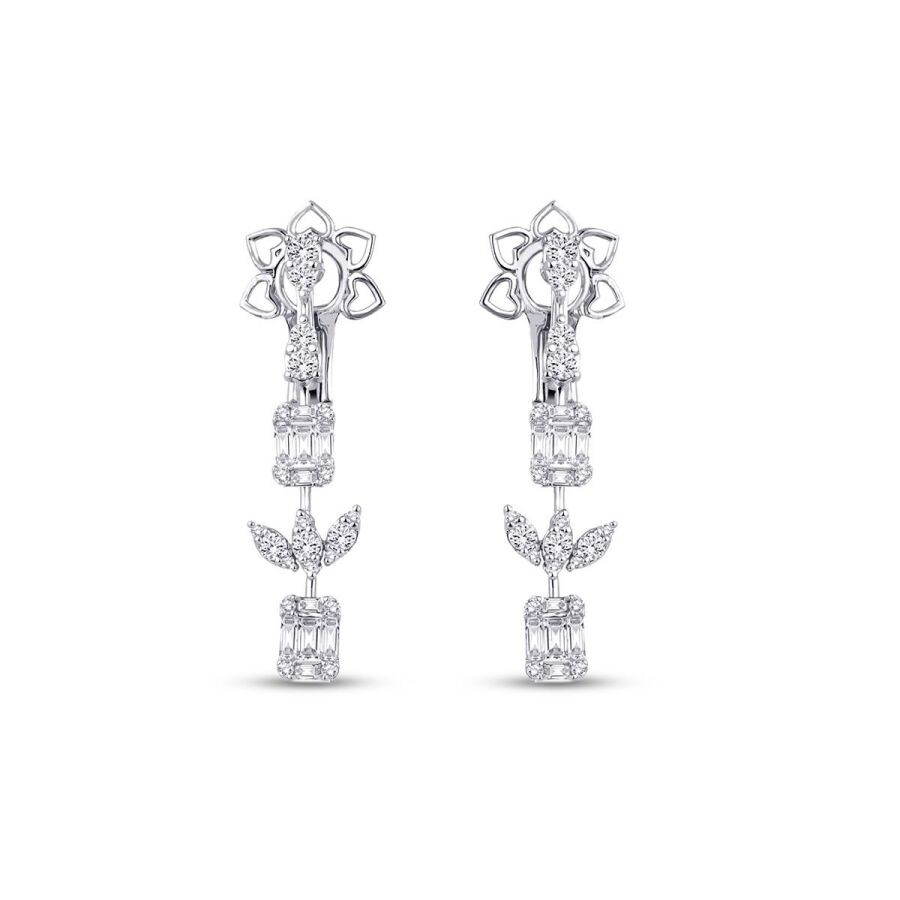 1.58 Karat Pırlanta Lotus Baget Küpe