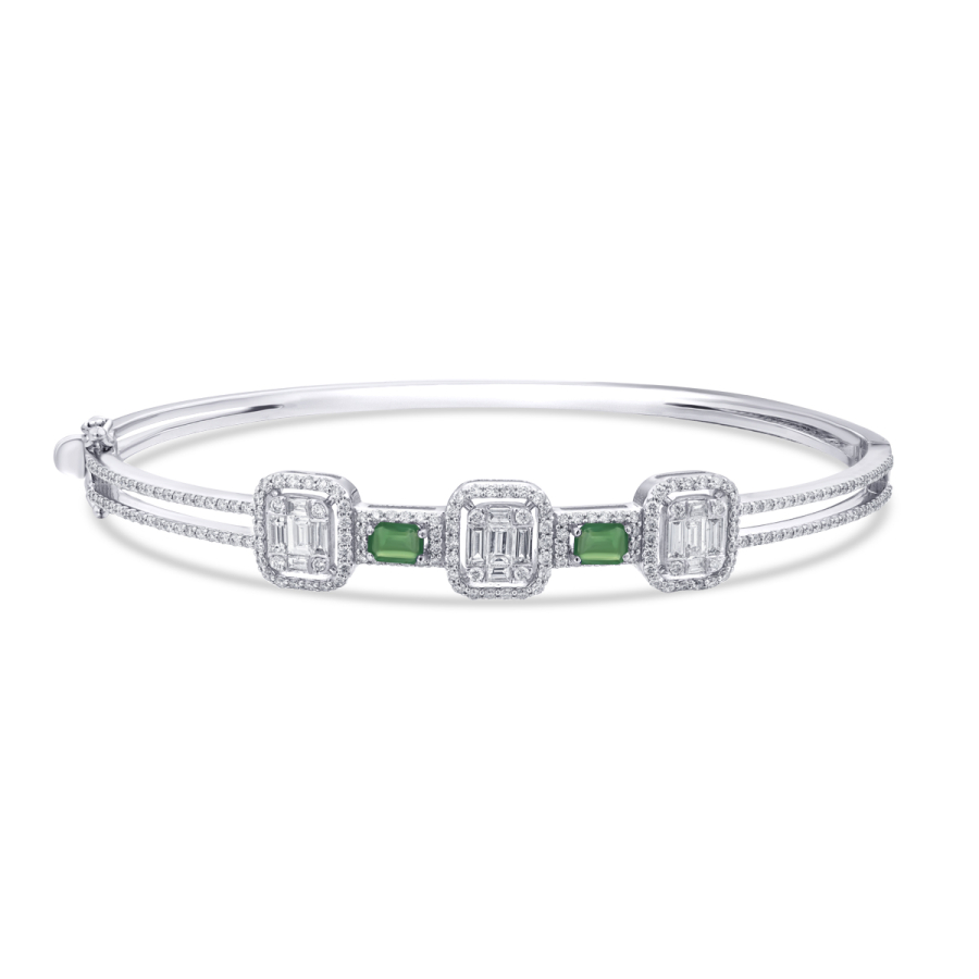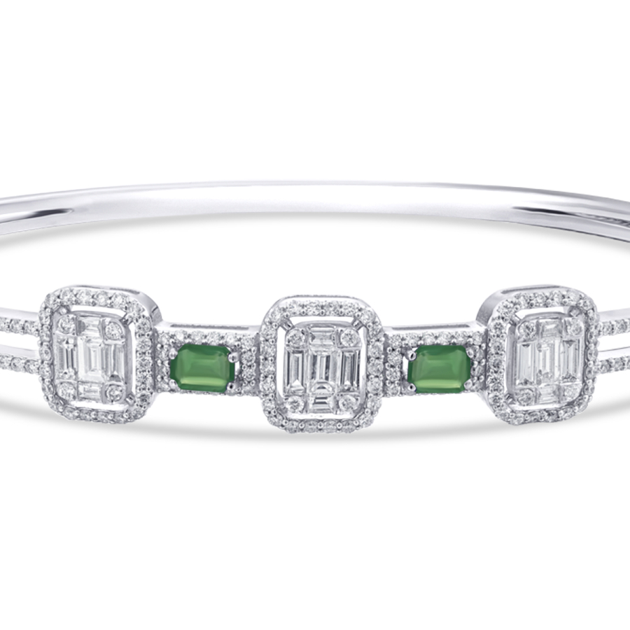 1.68 Karat Pırlanta Baget Zümrüt Kelepçe