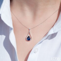 1.98 Karat Pırlanta Safir Damla Kolye T1760